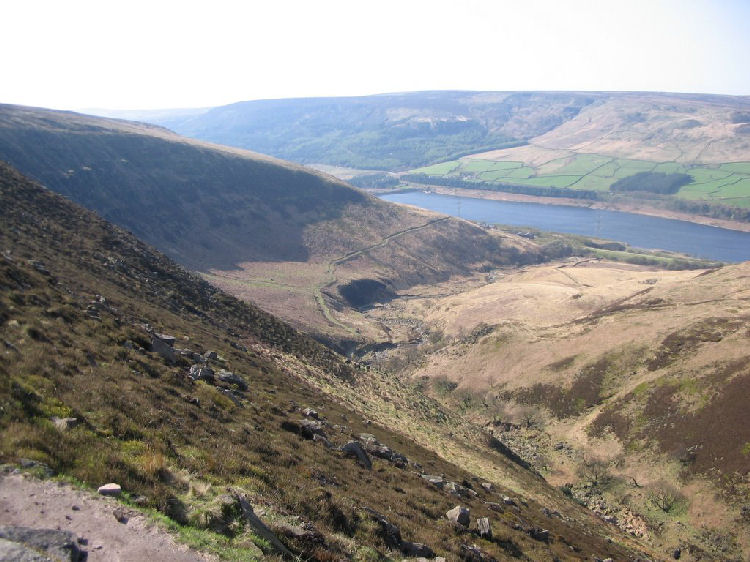 Bleaklow Head cairn was reached without a problem and on such a lovely day did not look broody or threatening. Soon after we had our first view of Longdendale with its string of reservoirs with a straightforward descent around Torside Clough. Old House was a successful B and B with a welcome cup of tea on arrival. A comfortable room with en-suite bath. The chap from Old House gave us all a lift to the Peel Arms for our evening meal which was delicious and Peter J. was very impressed with the real ale and the price of a pint up north, We had a good chat with John and as a local taxi could not take 5 people the landlord loaded us all into his people carrier and transported us back home. A perfect end to the day. In bed by 10 pm.